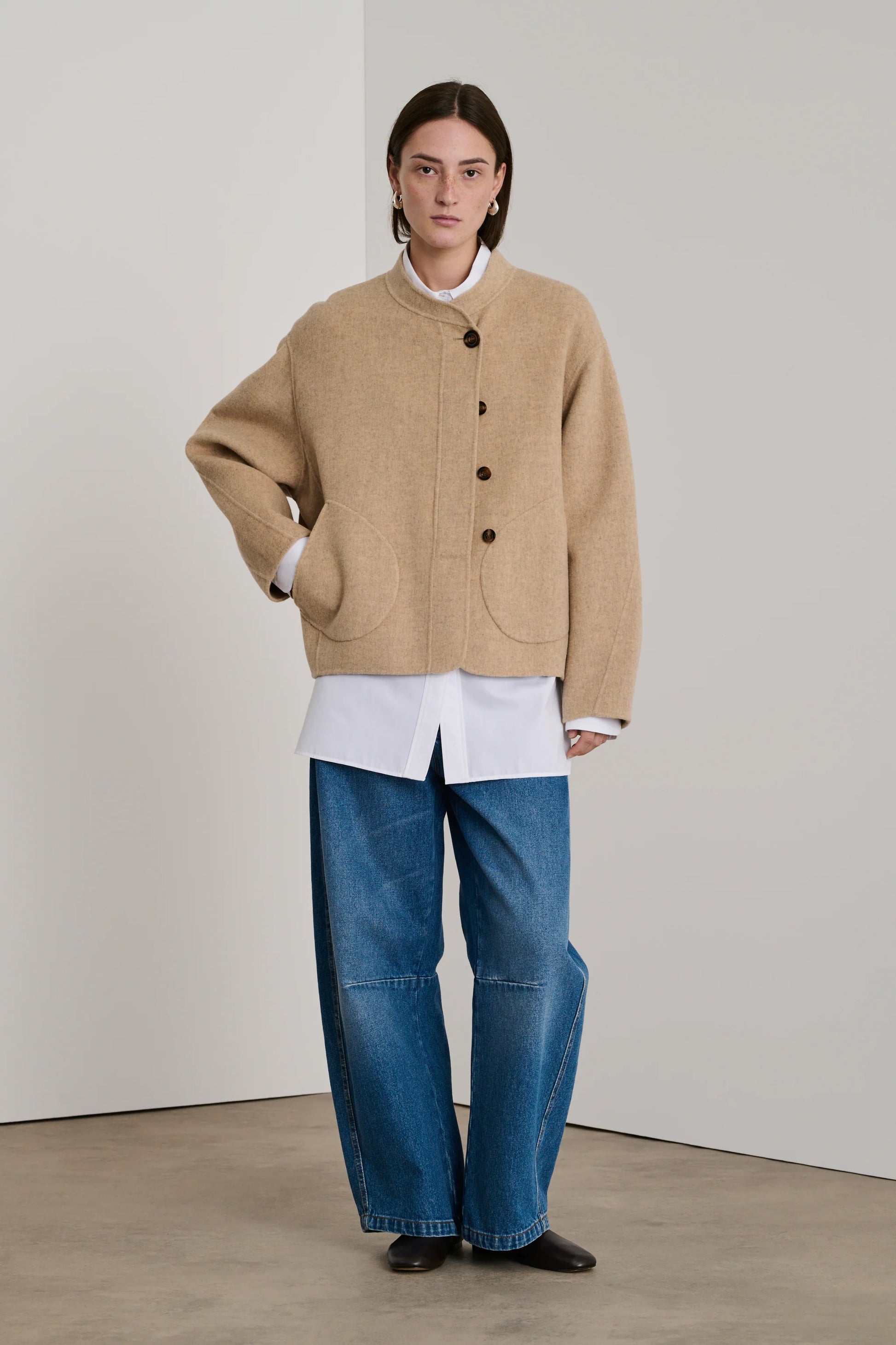 Le manteau Windsor est l’une des pièces signature de Soeur, mêlant élégance intemporelle et confort moderne. Avec sa forme droite ample et son tissu en laine majoritaire, il offre une silhouette fluide et structurée.