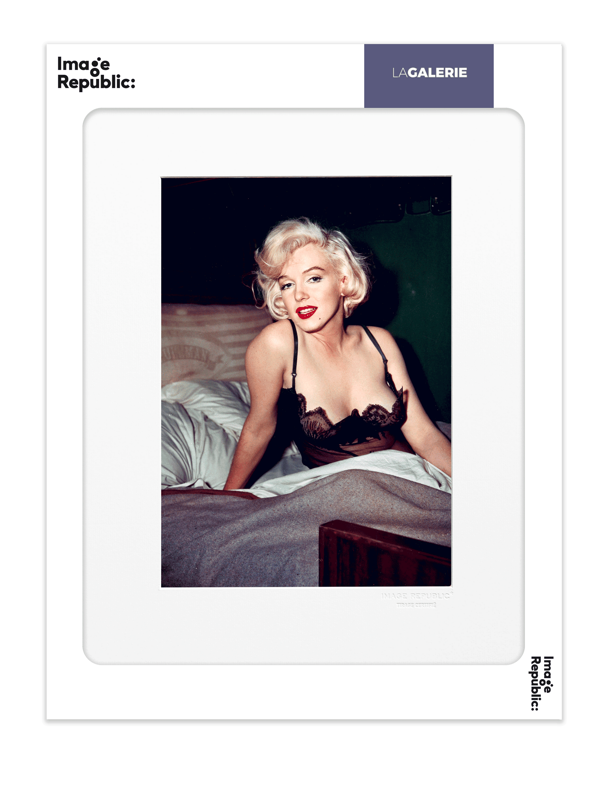 Allongée sur un lit, le regard doux et profond, Marilyn Monroe apparaît ici dans une parenthèse d’intimité rare, loin des projecteurs et du glamour officiel. Une image pleine de grâce, où se révèle toute la fragilité lumineuse de l’icône intemporelle du cinéma américain.