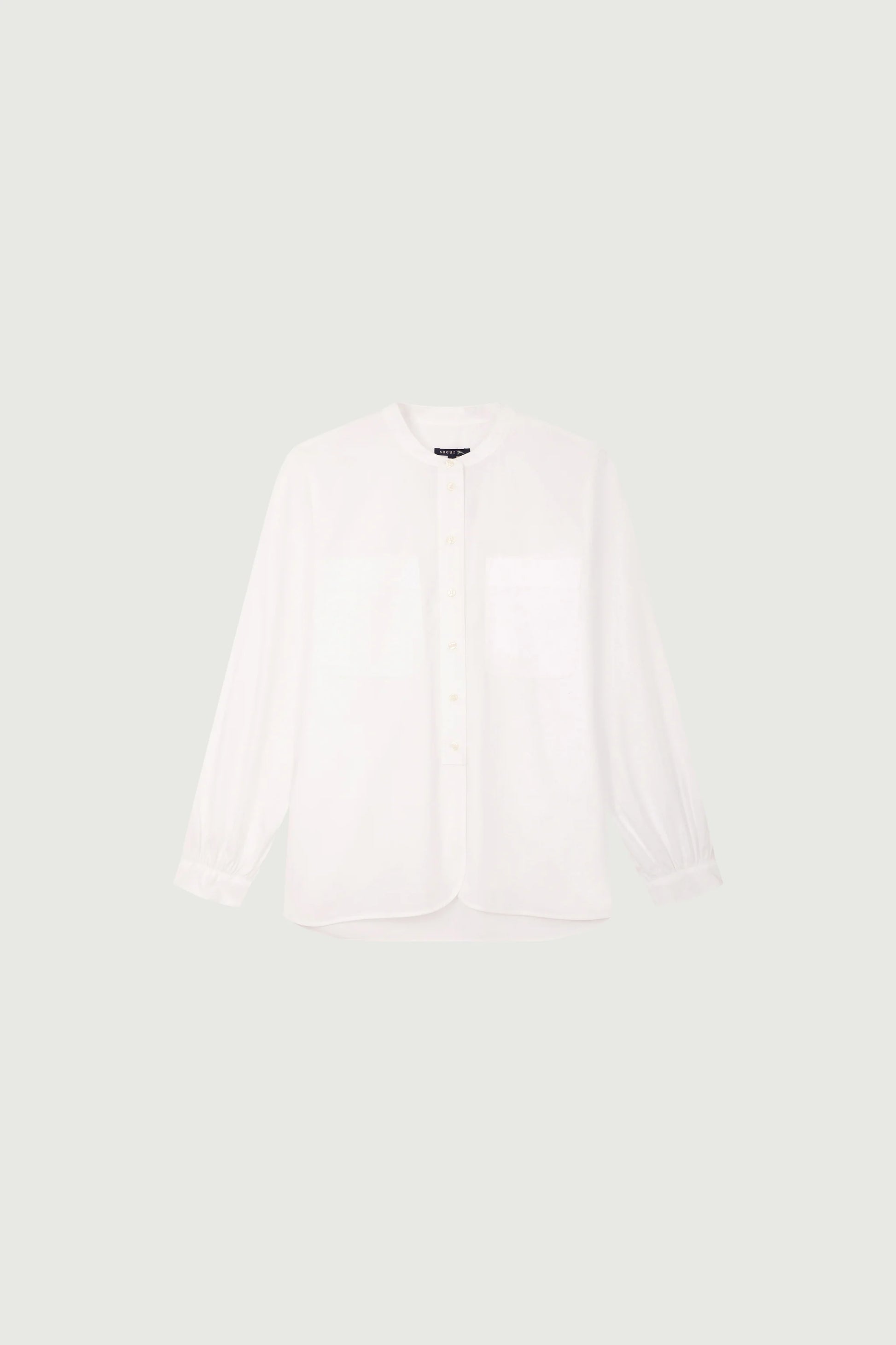 La Laurette revisite la chemise classique avec une coupe droite ample qui assure un confort optimal, tout en rehaussant une élégance naturelle. Ses manches longues tombantes, son col montant discret et ses poches poitrine plaquées lui confèrent une touche décontractée sophistiquée. Disponible en blanc lumineux ou bleu doux, elle incarne la sobriété raffinée de la garde-robe parisienne