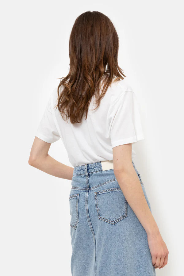 Avec sa coupe sobre et son décolleté en V, le tee shirt Dalton en blanc est un véritable indispensable du vestiaire féminin. Confectionné dans un mélange ultra doux de lyocell et de coton, il offre un confort inégalé et un tombé fluide. Facile à porter seul ou sous une veste, il s’adapte à tous les styles et toutes les occasions.