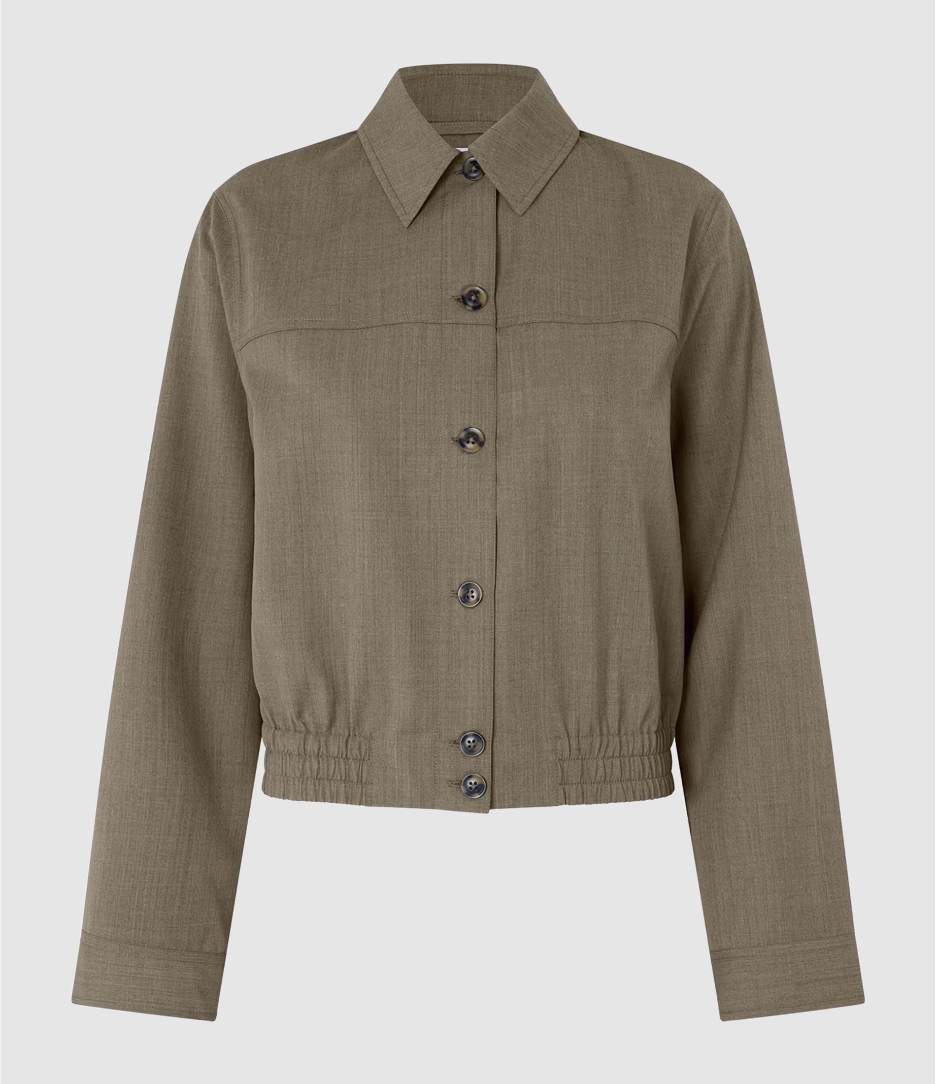 La Saesmella Shirt est une surchemise légère et structurée, au style aviator chic. Elle présente une coupe droite raccourcie à la taille (cropped), avec des manches longues à poignets boutonnés et un ourlet élastiqué qui structure la silhouette. Confortable et minimaliste, elle offre une allure moderne et pratique.