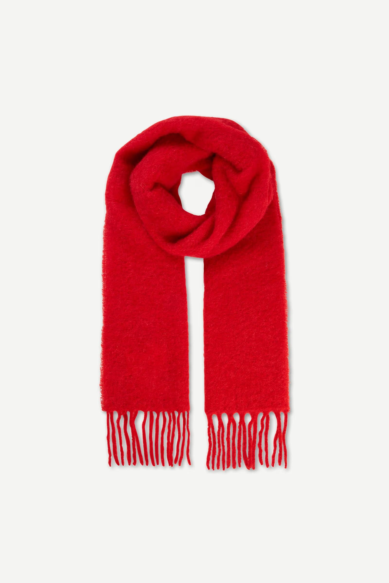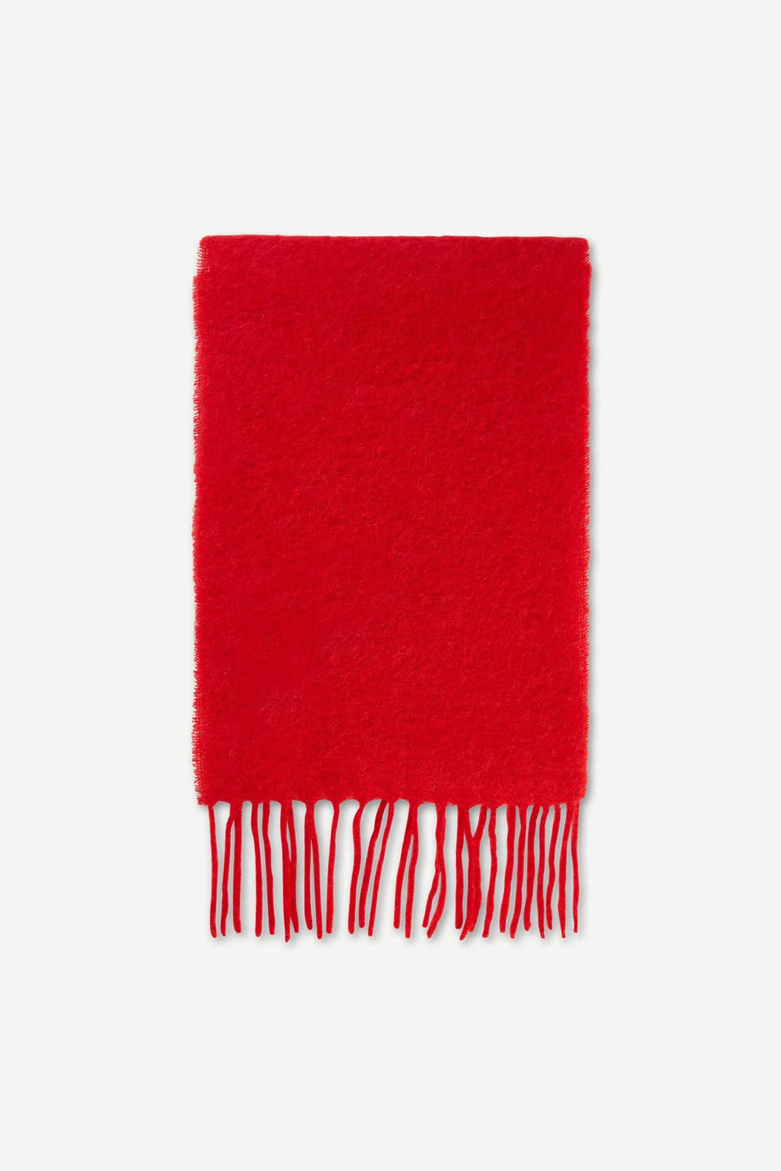 Cette écharpe se distingue par sa matière moelleuse et moirée, tirée d’un mélange de mohair, d’alpaga et de laine, enrichi d’un peu de polyamide pour plus de durabilité. Avec ses bords à franges délicates et son étiquette Samsøe & Samsøe discrètement placée au verso, elle incarne une élégance moderne tout en confort. Sa longueur généreuse permet de la porter en de multiples façons, du tour de cou au châle sophistiqué.