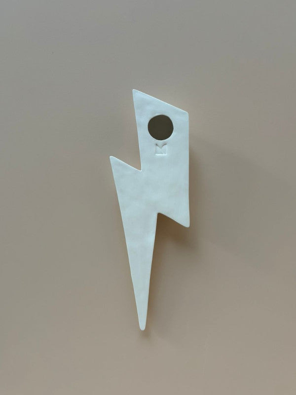 Apportez lumière et énergie à votre intérieur ou extérieur avec cet éclair décoratif en céramique artisanale. Symbole de fulgurance et intuition, il illumine vos murs avec style et modernité.
