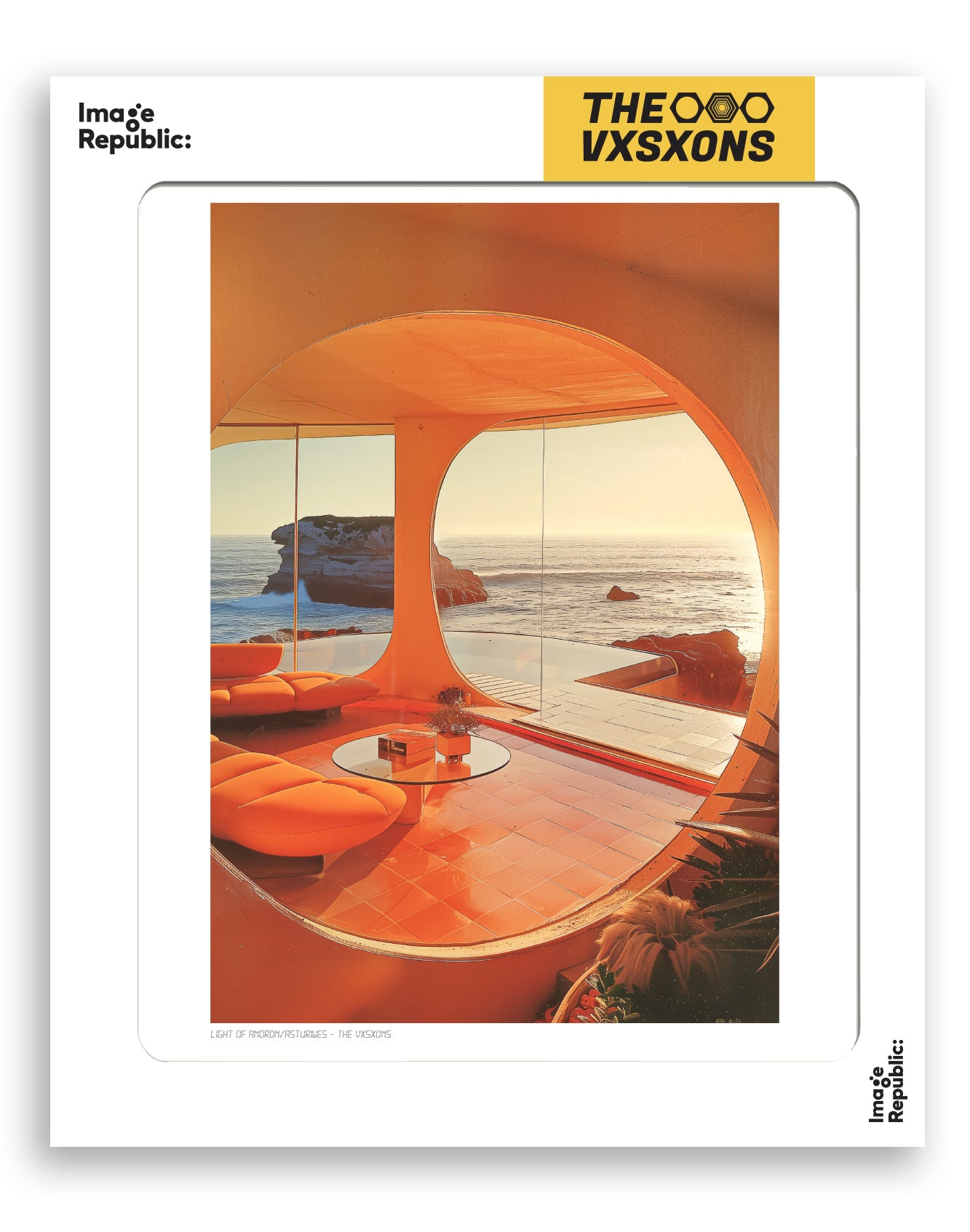 Avec ses nuances délicates et son jeu de lumière poétique, cette illustration « Light of Andrin – Asturies » du collectif The Vxsxons évoque une atmosphère douce et contemplative, comme filtrée à travers le prisme des souvenirs. Une pièce parfaite pour insuffler une touche d’apaisement et de rêverie à un mur.