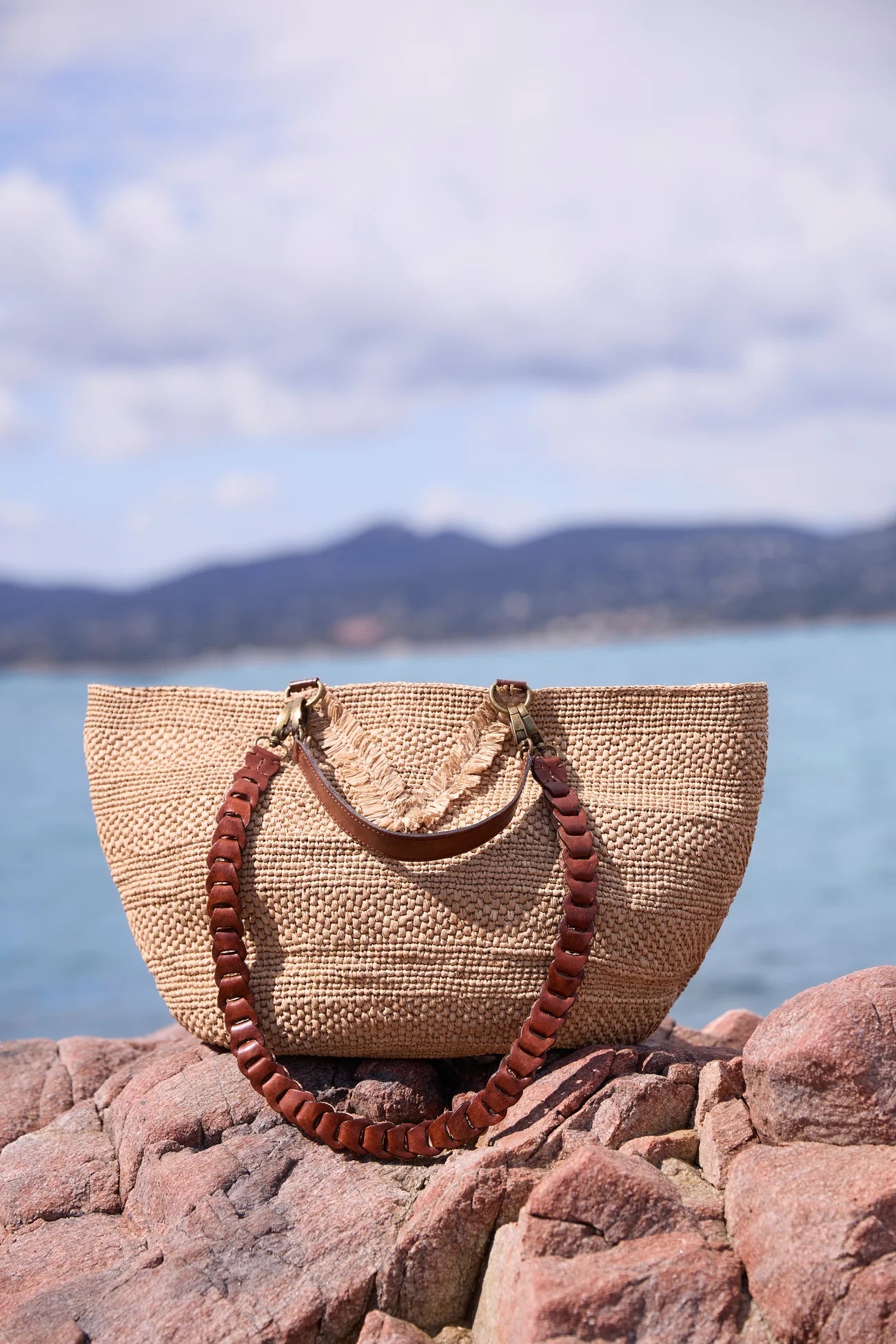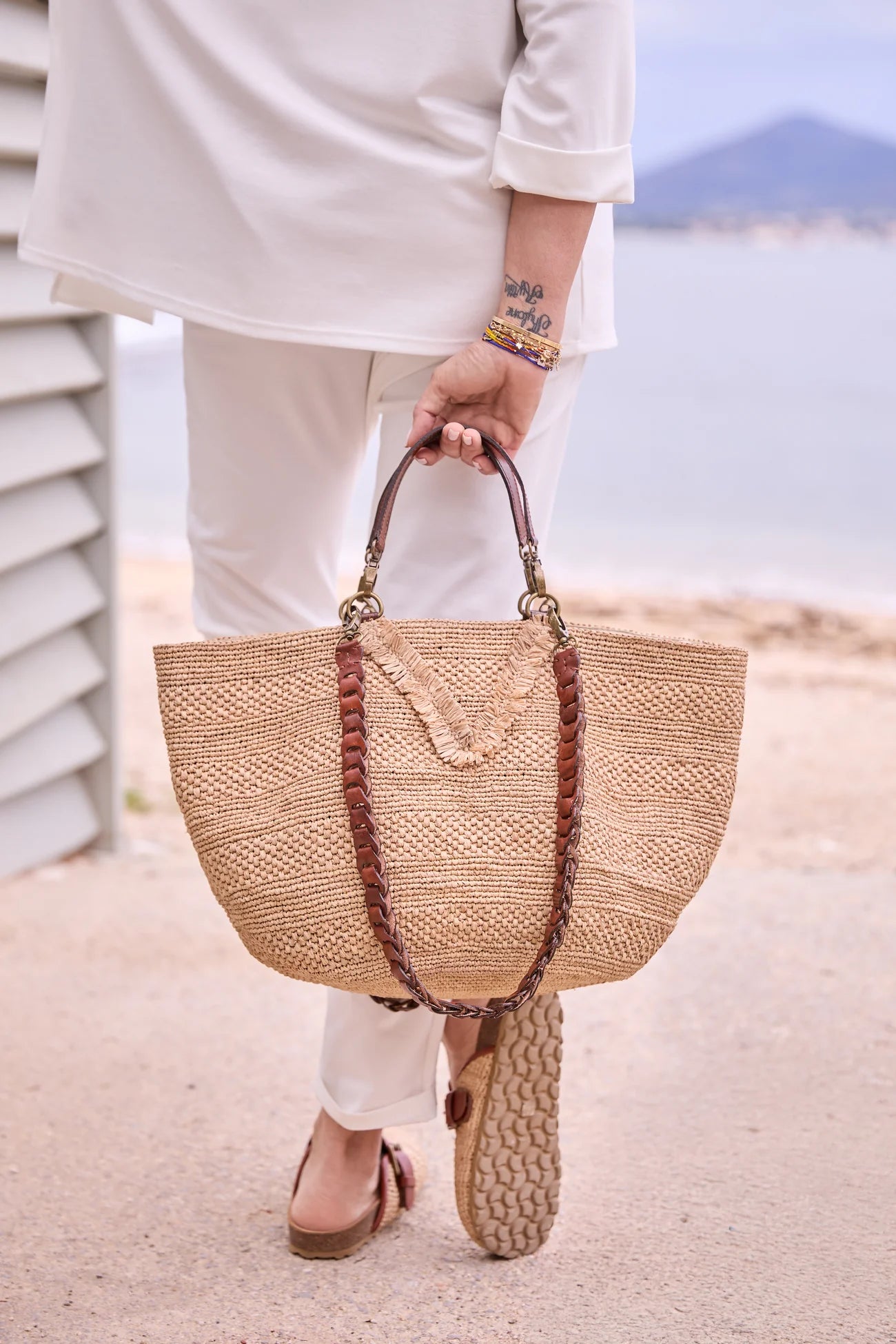 - Sac tote medium en raphia tressé