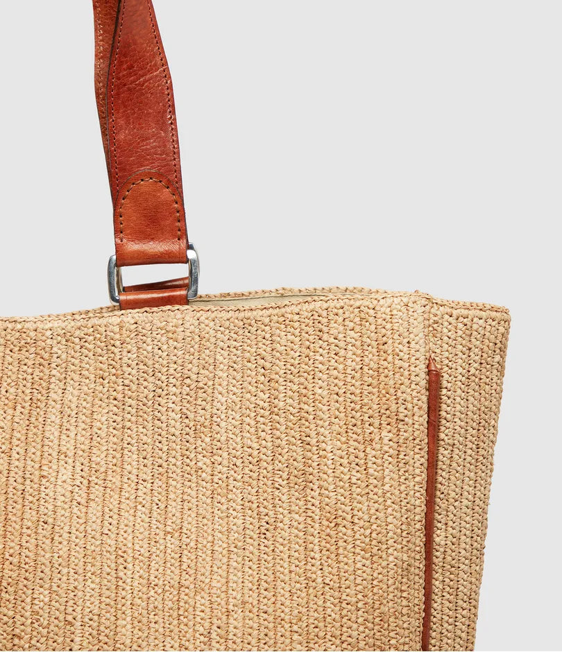 Le Cabas Isika Raphia Tea allie élégance naturelle et savoir-faire artisanal. Confectionné en raphia naturel, il est doté de deux anses en cuir végétal et offre une fermeture par bouton pression à l’intérieur pour plus de sécurité.