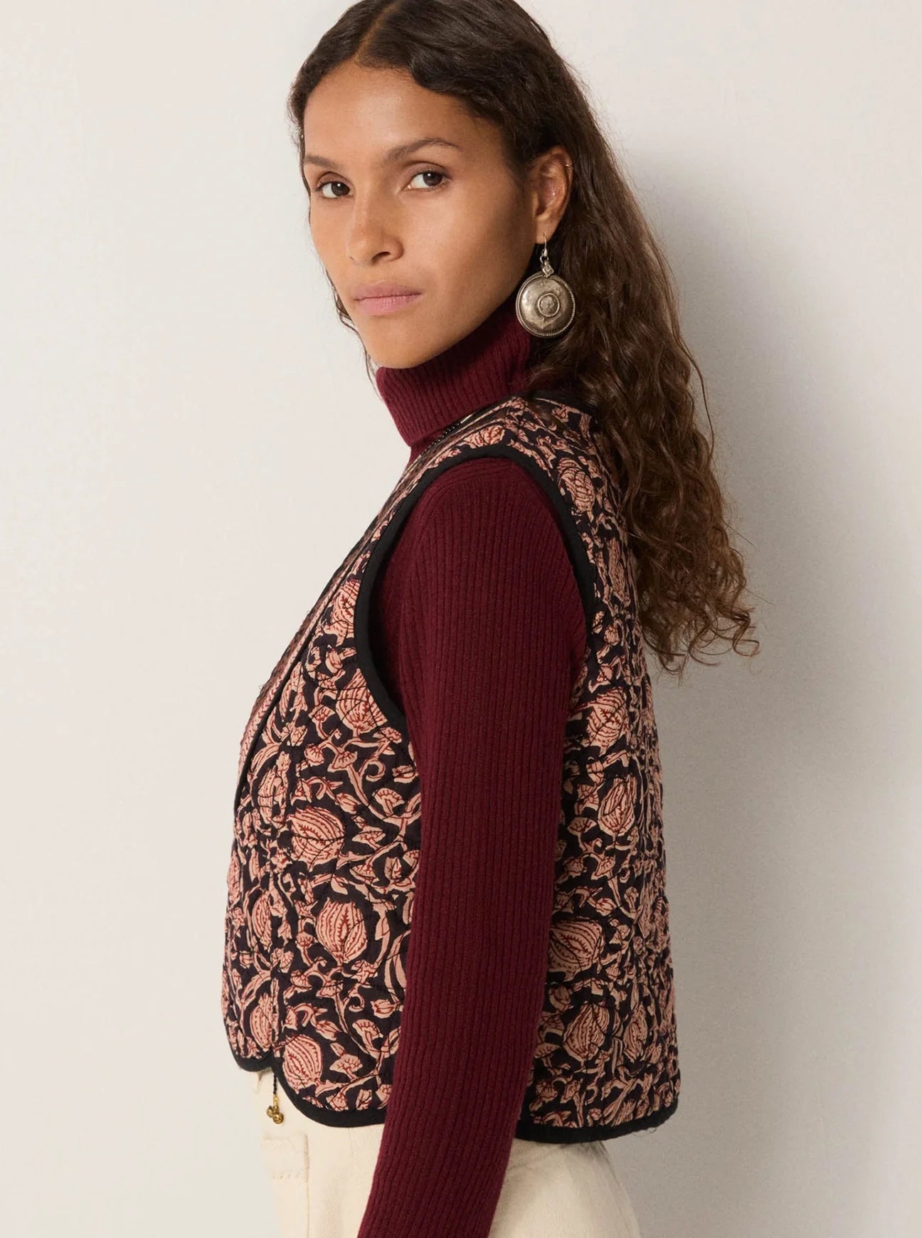 Le gilet Luna est une pièce sans manches, en voile de coton, léger et structuré, idéal pour superposer sans alourdir votre silhouette. Sa broderie florale dense apporte texture et élégance, tandis que le devant ouvert et les bords fins mettent en valeur la coupe sur mesure. Parfait porté sur une chemise ou une robe fluide pour un look raffiné et moderne.