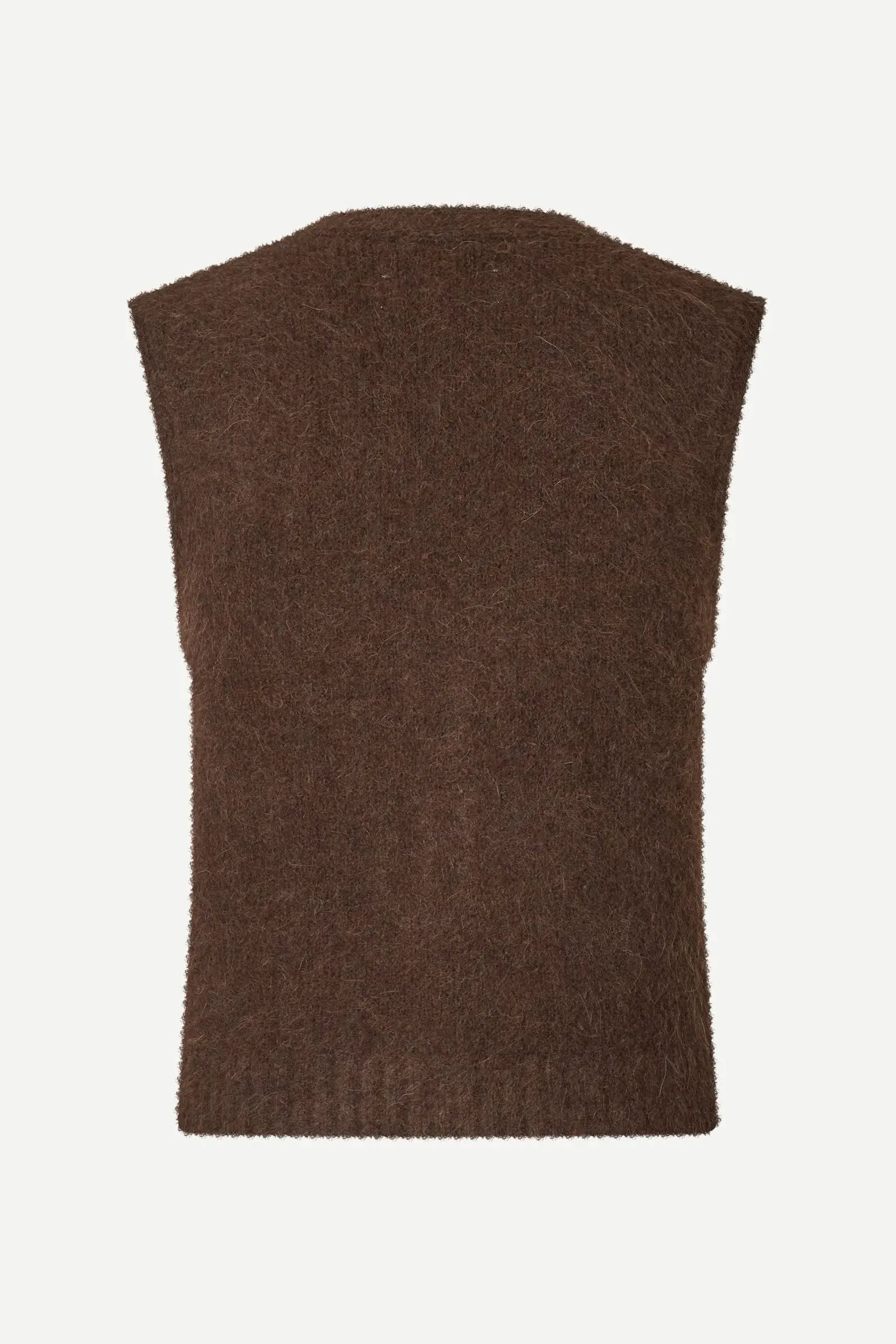 Le gilet Sajeanne présente une coupe régulière et une maille douce au toucher légèrement brossé. Doté d’une fermeture boutonnée, d’une encolure V et d’un ourlet côtelé, il offre un style polyvalent et confortable. Un logo brodé ø sur le côté vient compléter ce modèle moderne, confectionné dans un mélange extensible avec laine d’alpaga.