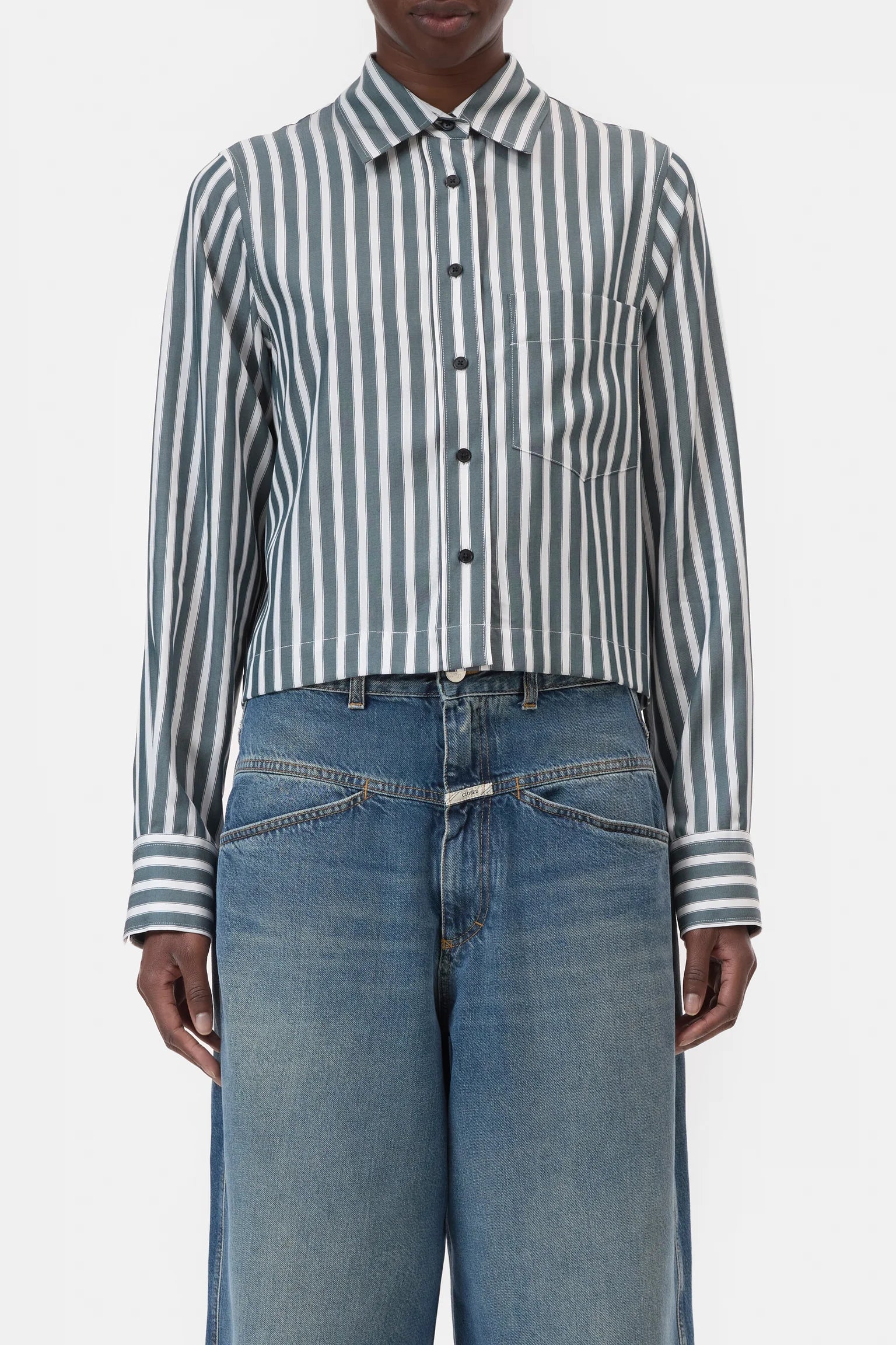 Ce chemisier court en lyocell allie légèreté et élégance. Confectionné au Portugal en pur lyocell, il offre un tissu doux et fluide, agréable à porter au quotidien. Sa coupe courte et moderne est sublimée par une patte de boutonnage complète avec boutons contrastants, un ourlet droit et des poignets boutonnés.