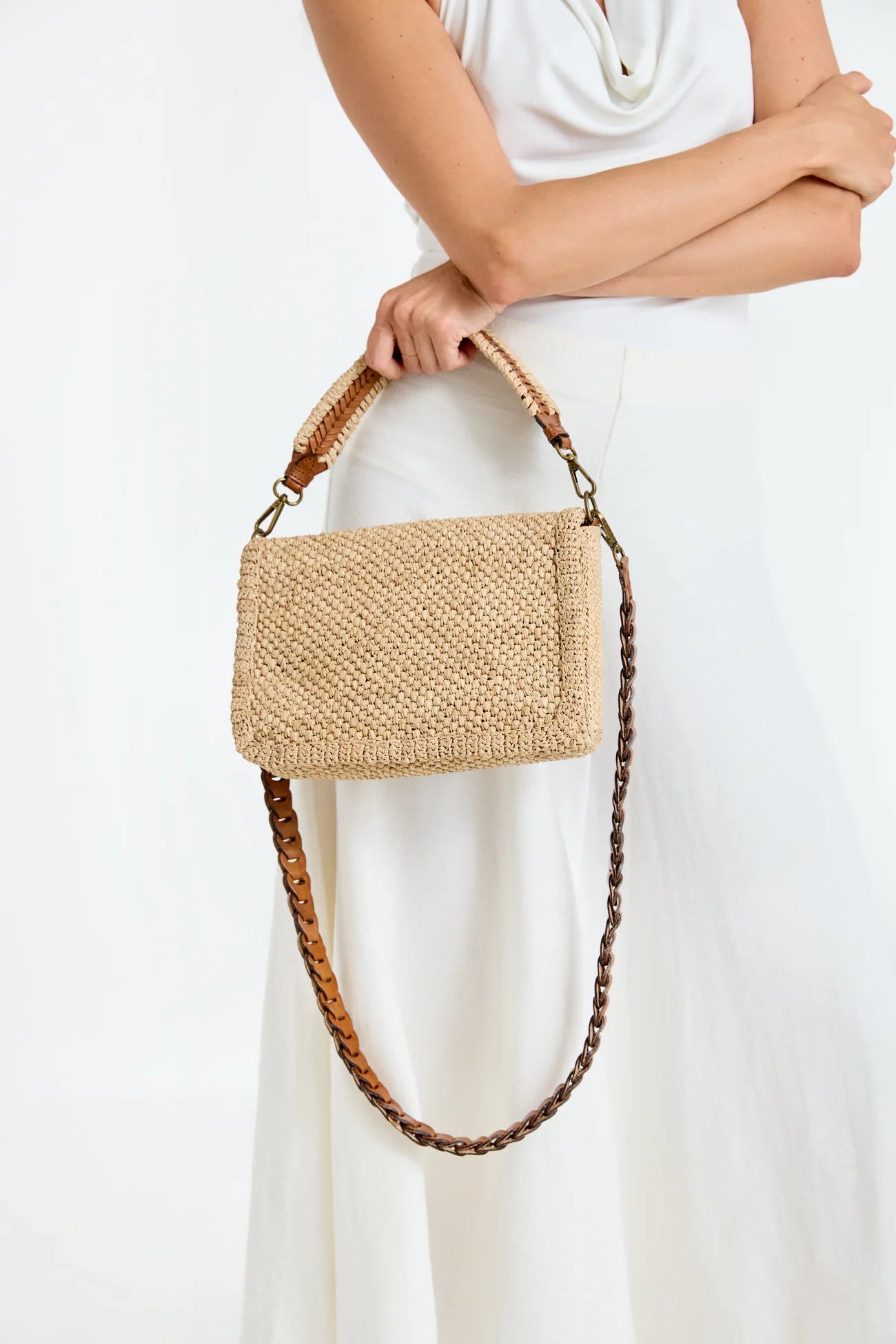 Le sac Opera est un modèle élégant et polyvalent qui associe raphia naturel et cuir de zébu pour une allure à la fois authentique et raffinée. Son format compact à rabat en fait un accessoire pratique pour le quotidien tout en conservant une silhouette structurée et intemporelle.