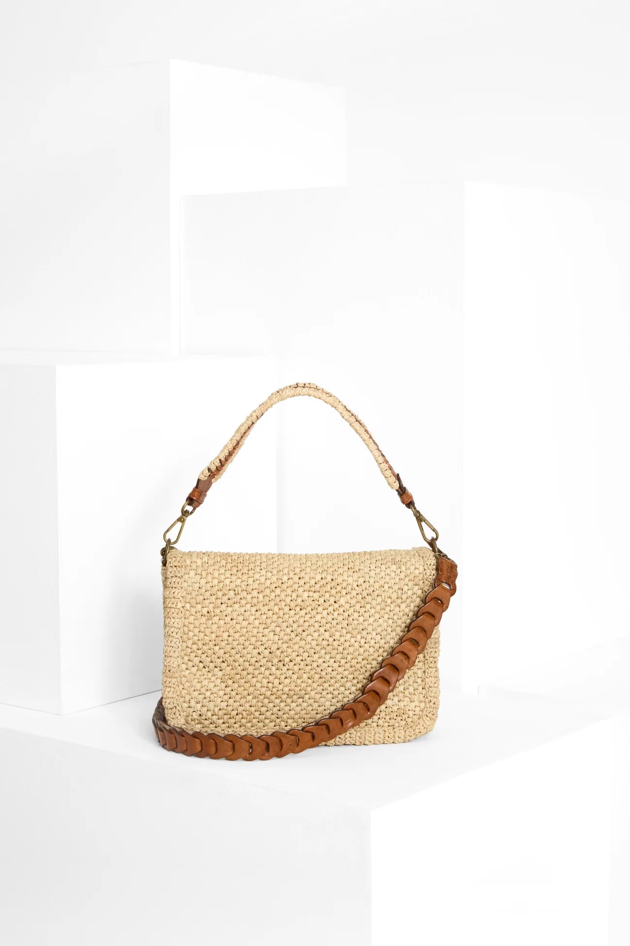 • Design bi-matière : raphia naturel et cuir de zébu